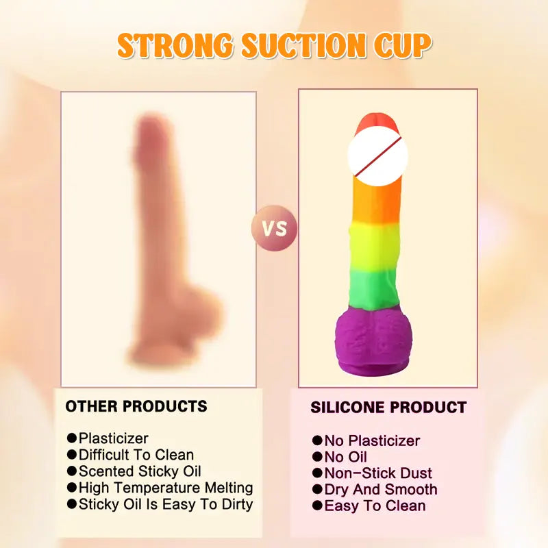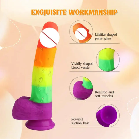 • 8.1-Inch Pride Rainbow Silicone Realistic Dildo