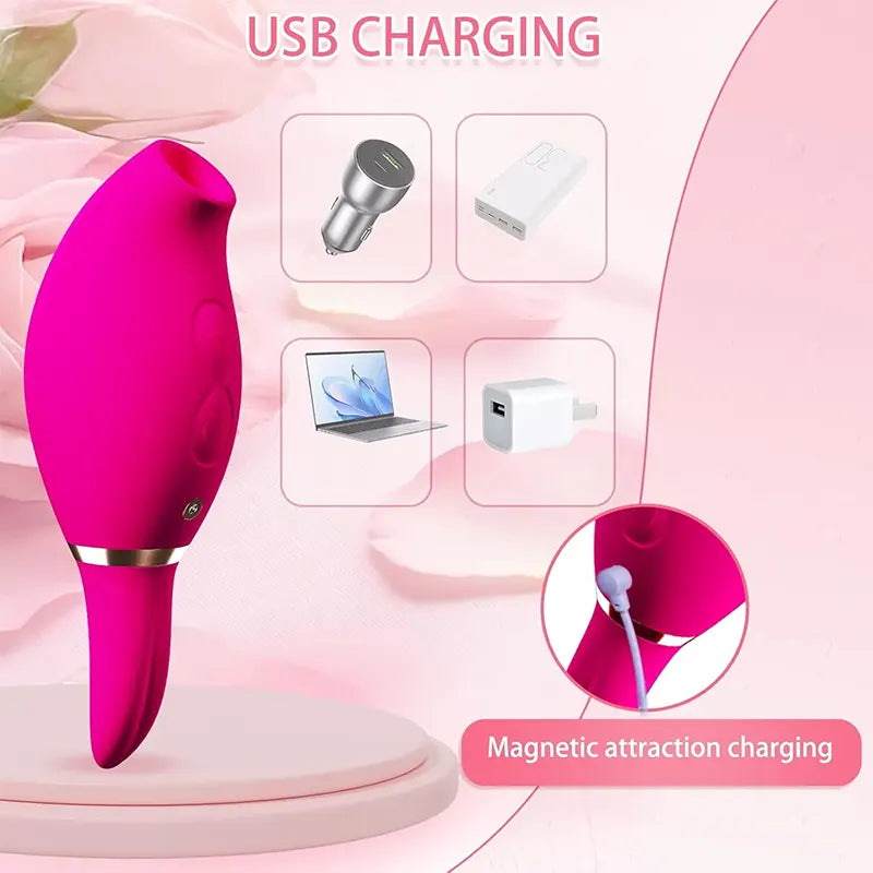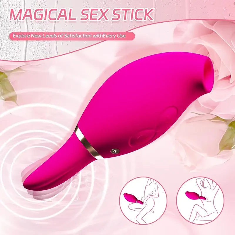 This elegant rose-red vibrator features a sleek design with dual ends that let you switch between clitoral and breast stimulation for varied and exciting sensations.