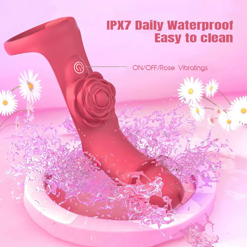 This wearable finger vibrator features a firm G-spot dildo and a soft rose-shaped stimulator. Its bendable structure allows for precise targeting of clitoris, G-spot, nipples, and more—bringing intense pleasure exactly where you want it.