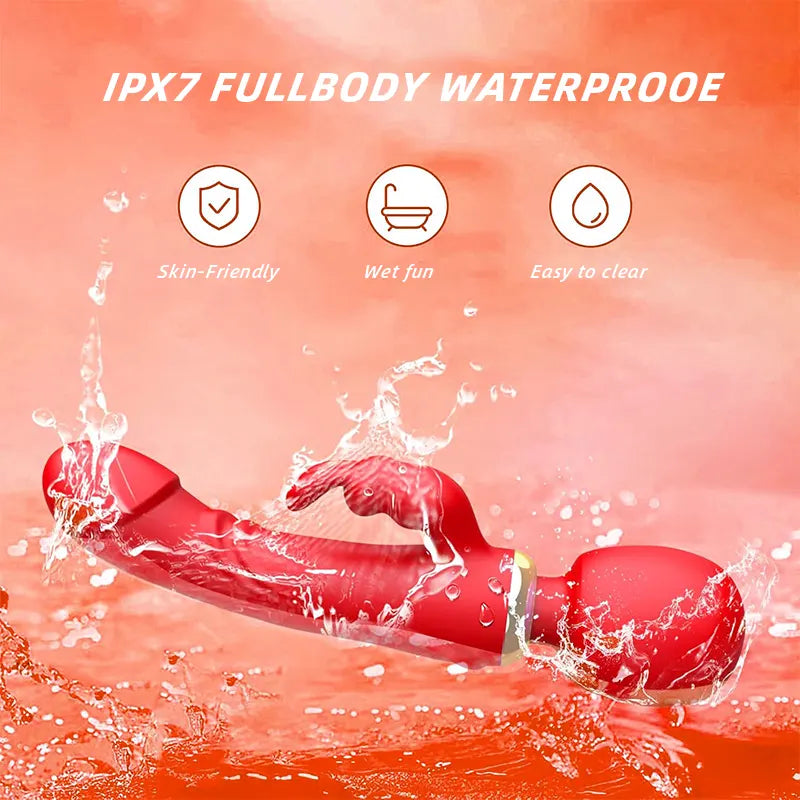 This thoughtfully designed rabbit wand offers deep, blended pleasure by simultaneously stimulating the clitoris, G-spot, and A-spot. Its dual-ended shape allows for creative use—whether you prefer internal depth or external teasing. With 10 rhythmic vibration modes and targeted curves, it’s built to deliver powerful orgasms, including the potential for squirting release. A perfect companion for solo play or partnered intimacy.