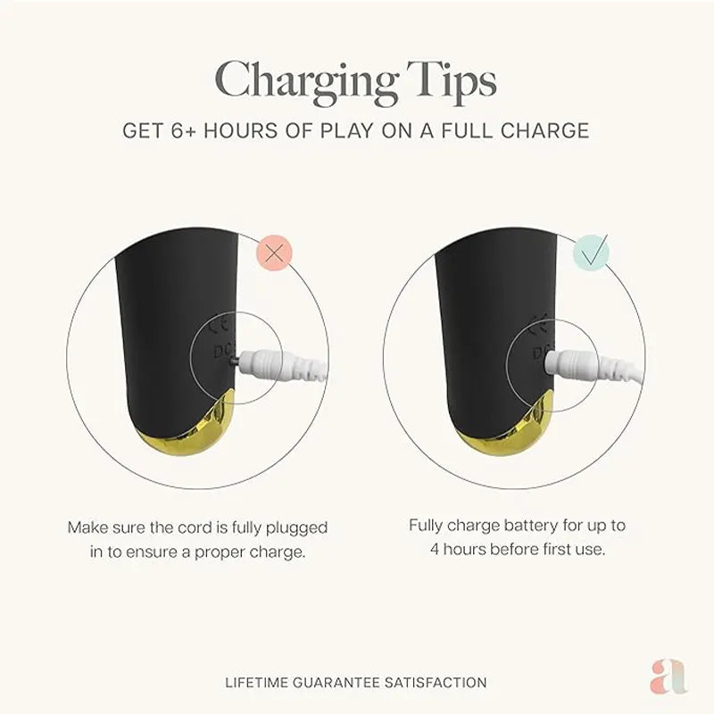 Engineered with a whisper-quiet motor, this wand keeps your sessions private without sacrificing strength. With up to 4 hours of battery life, it’s always ready for both quick indulgence and longer, luxurious play.